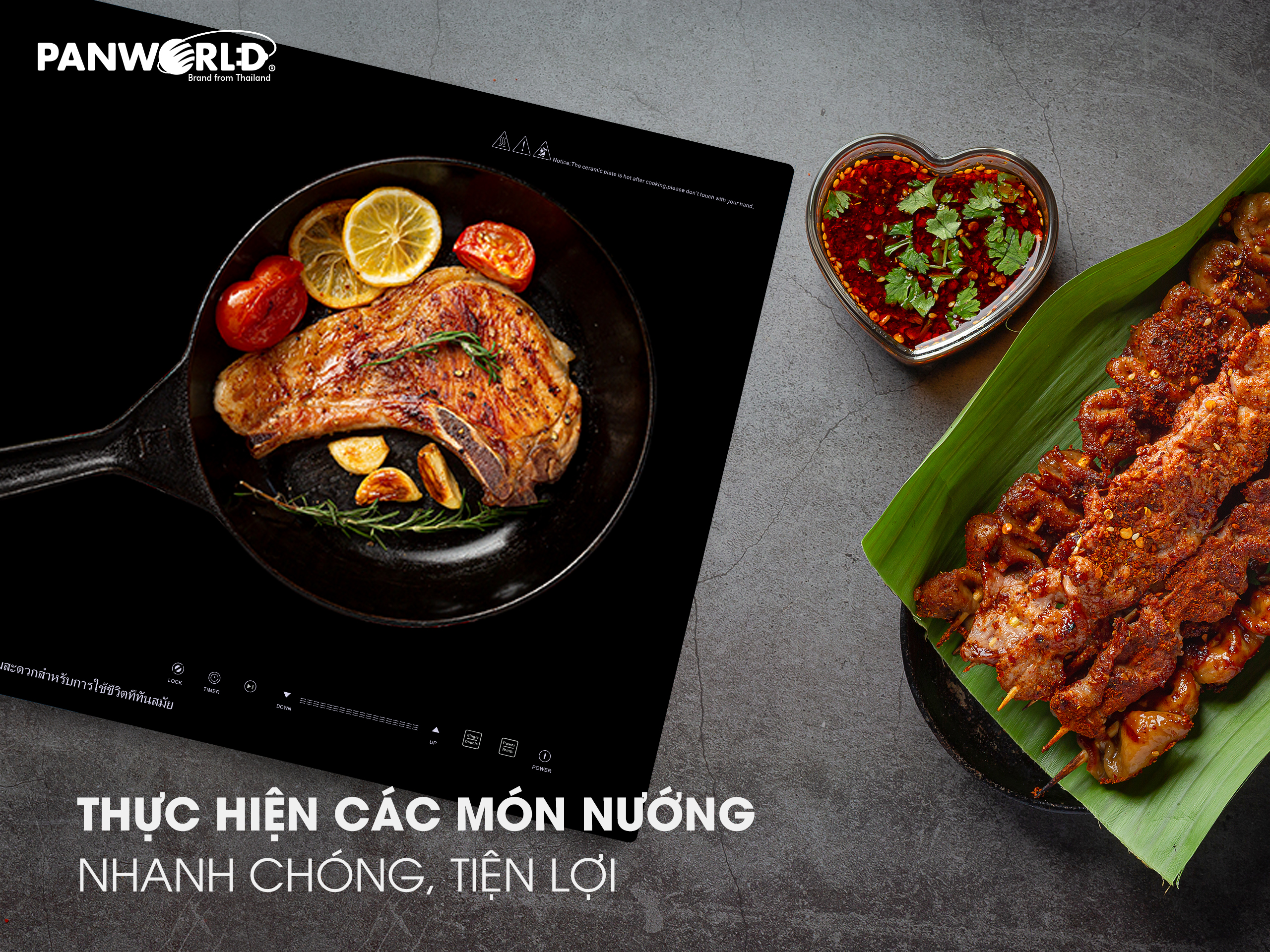 Bên bếp hồng ngoại có thể thực hiện các món nướng một cách nhanh chóng, tiện lợi và dễ dàng vệ sinh.