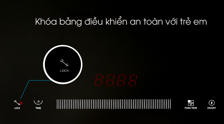 Khi kích hoạt chức năng này, toàn bộ bảng điều khiển của bếp sẽ bị vô hiệu hóa, nhờ đó nếu người dùng thao tác cũng không làm thay đổi cài đặt trước đó.