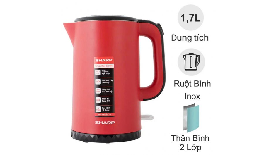 Bình đun siêu tốc 1.7 lít Sharp EKJ-17EVPS-RD new