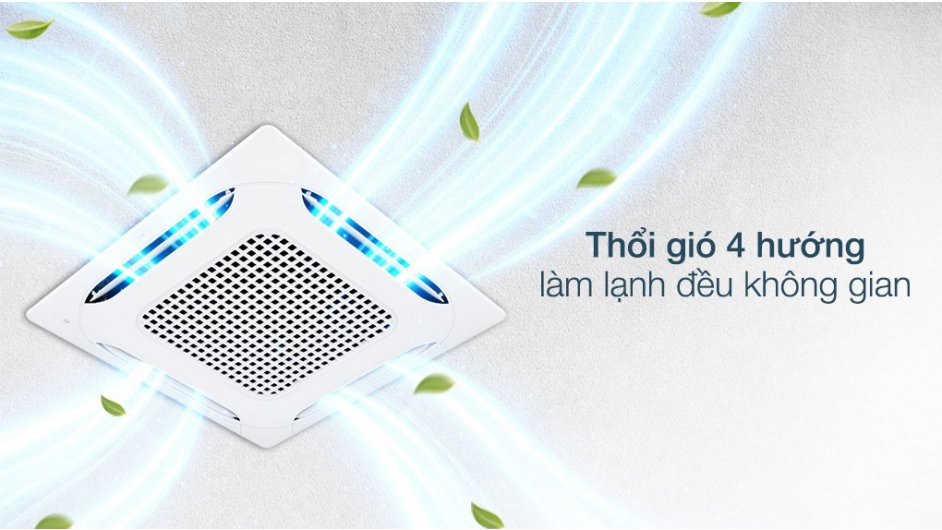 Dòng máy Cassette âm trần cho luồng thổi rộng tạo hiệu quả điều hòa không khí cao cho các không gian có trần cao đến 4,5m. Giờ đây các hội trường, phòng trưng bày hay trung tâm mua sắm có trần cao đều được tìm thấy giải pháp làm lạnh hiệu quả.