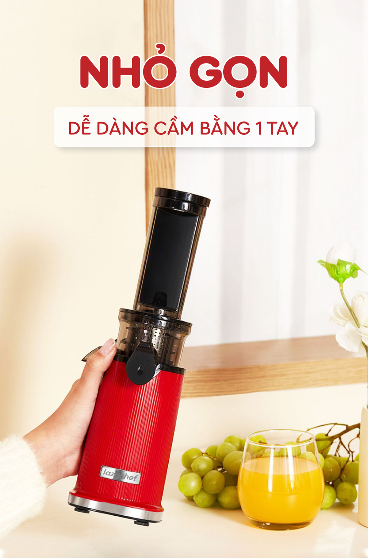 Máy ép chậm mini 3S Lazychef là sản phẩm gia dụng đa năng đến từ thương hiệu Lazychef Việt Nam. Vởi thiết kế nhỏ gọn vỏn vẹn 1kg, vòng xoay đảo chiều thông minh, dễ dàng lắp đặt và vệ sinh chỉ trong 3s. Máy ép chậm mini 3S đã chiếm được sự yêu thích và trở thành một sản phẩm máy ép chậm top 1 trong lòng người tiêu dùng.