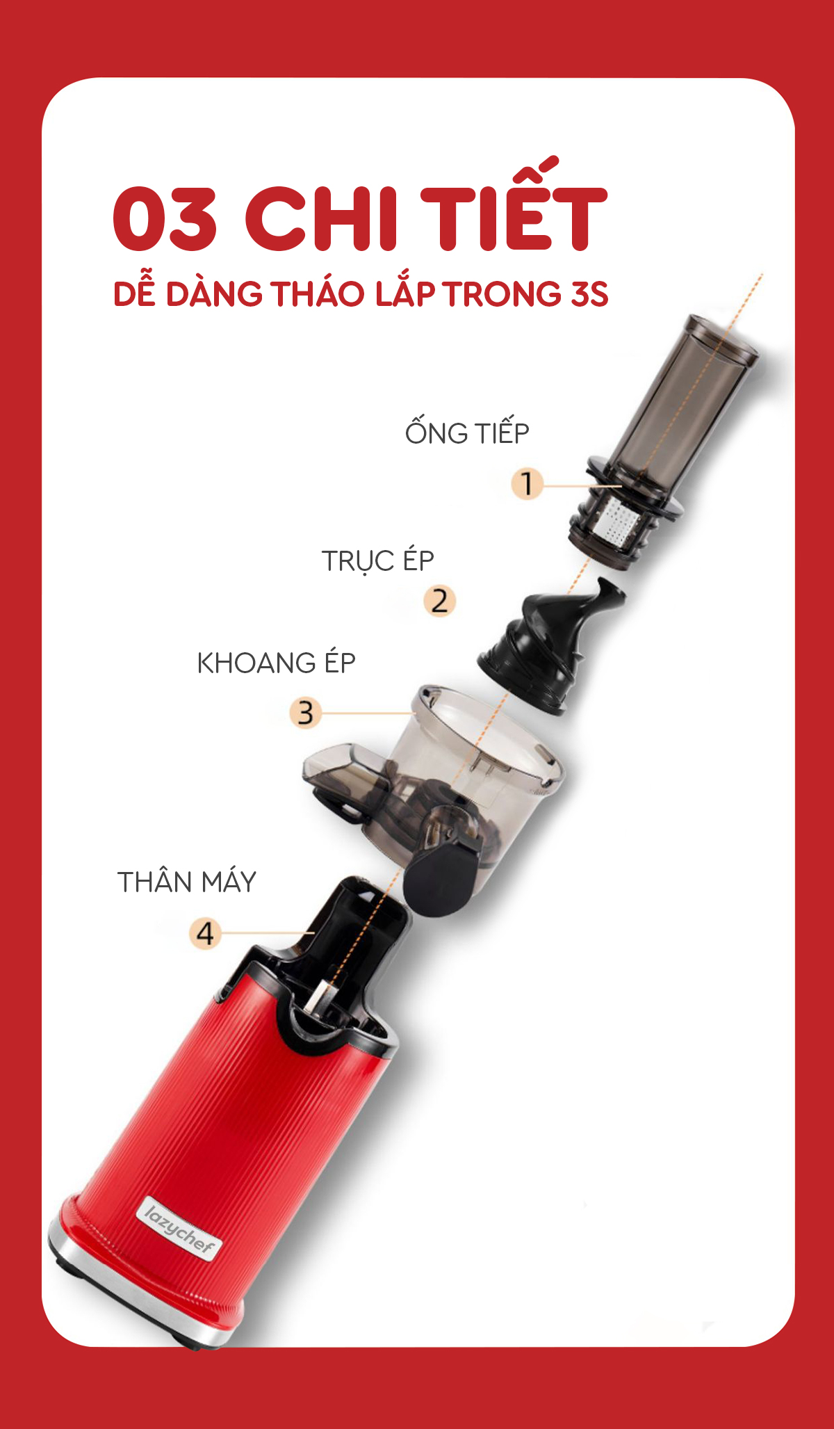 Thông số kỹ thuật Máy ép chậm mini Lazychef 3S LC-02ME