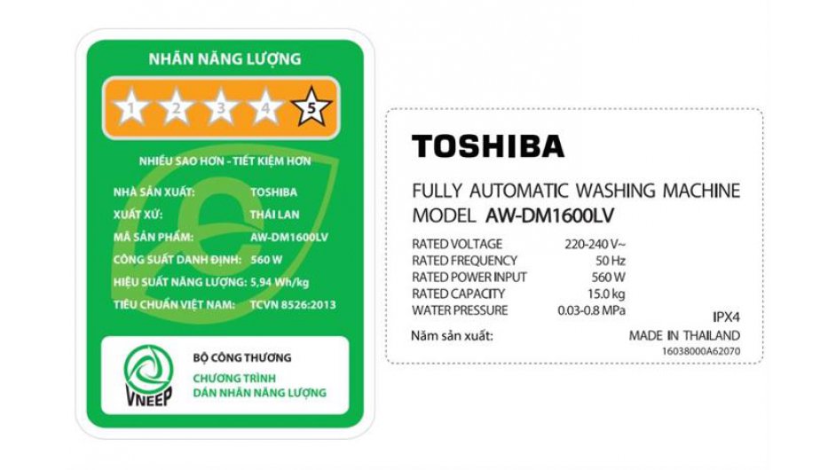 Thông số kỹ thuật Máy giặt Toshiba Inverter 15 kg AW-DM1600LV(SG) new