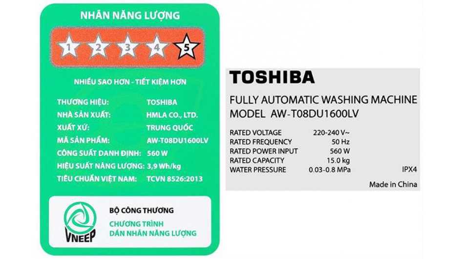 Thông số kỹ thuật Máy giặt Toshiba Inverter 15 kg AW-T08DU1600LV(MK) new 2026