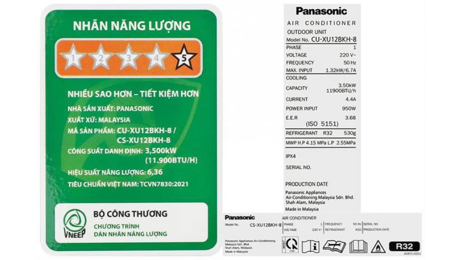 Thông số kỹ thuật Máy lạnh Panasonic Inverter 1.5 HP CU/CS-XU12BKH-8 NEW