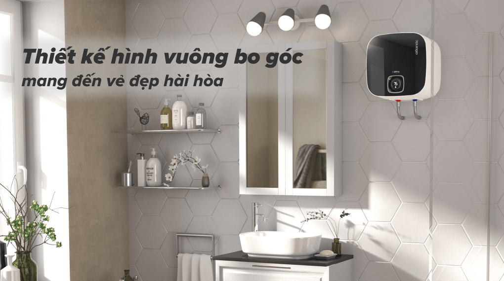 Bình nóng lạnh gián tiếp Atlantic 30 lít 2500W sở hữu thiết kế hình vuông bo góc tinh tế. Lớp vỏ nhựa cao cấp màu đen sang trọng phù hợp với mọi không gian phòng tắm.