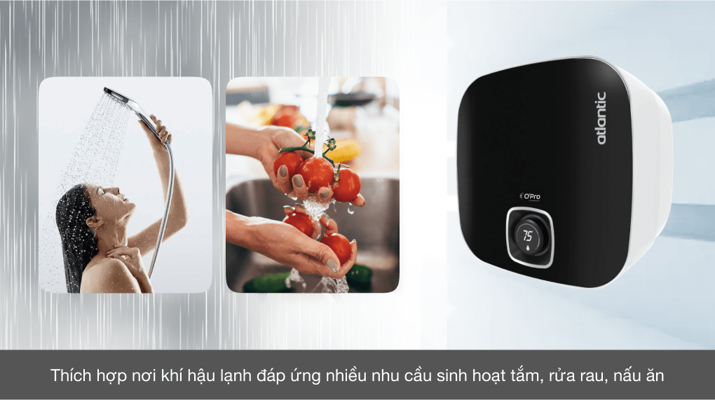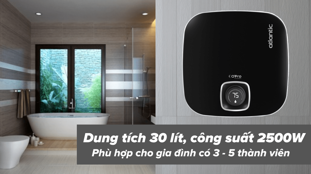 Bình nóng lạnh Atlantic có công suất làm nóng 2500W với dung tích bình chứa lên tới 30 lít. Với dung tích lớn như vậy nên đây là sản phẩm rất đáng cân nhắc cho gia đình từ 3 - 5 người sử dụng.