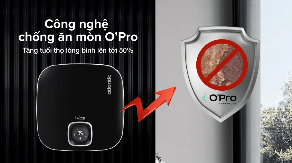 Công nghệ chống ăn mòn O’pro giúp tăng tuổi thọ của thanh Mg lên tới 50% nhờ sử dụng thanh điện trở Ohmic như thiết bị chống ăn mòn thụ động, đồng thời bảo vệ lòng bình chứa giúp máy hoạt động tốt hơn.