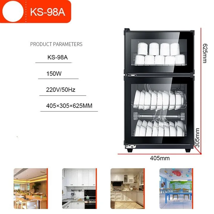 Thông số kỹ thuật Máy sấy bát 2 tầng KS-980A dung tích 98 lít, Máy sấy chén bát diệt trùng khử khuẩn