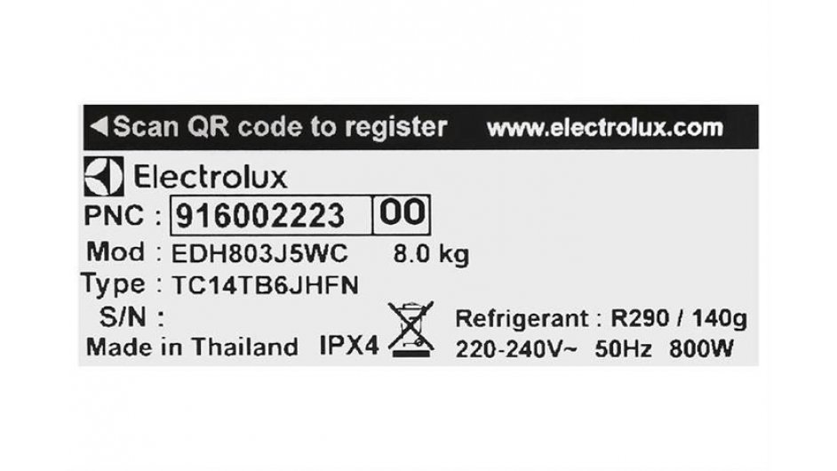Thông số kỹ thuật Máy sấy bơm nhiệt Electrolux UltimateCare 8 kg EDH803J5WC - Thái Lan new