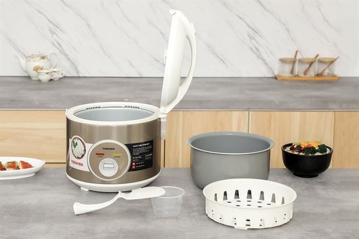 - Nồi cơm điện Toshiba thuộc loại nồi cơm nắp gài, giúp hạn chế nhiệt lượng thoát ra ngoài trong quá trình nấu cơm, giúp cơm nhanh chín và giữ ấm lâu hơn.