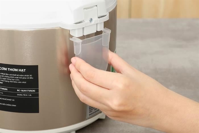 - Bộ thoát hơi nước và khay hứng nước trào của nồi có thể tháo rời để dễ dàng vệ sinh.