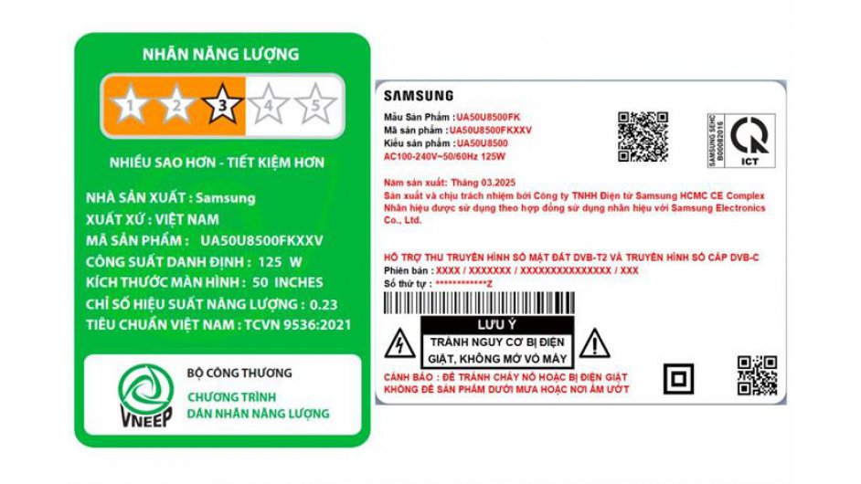 Thông số kỹ thuật Smart Tivi Crystal UHD Samsung 4K 50 inch UA50U8500F new 2025