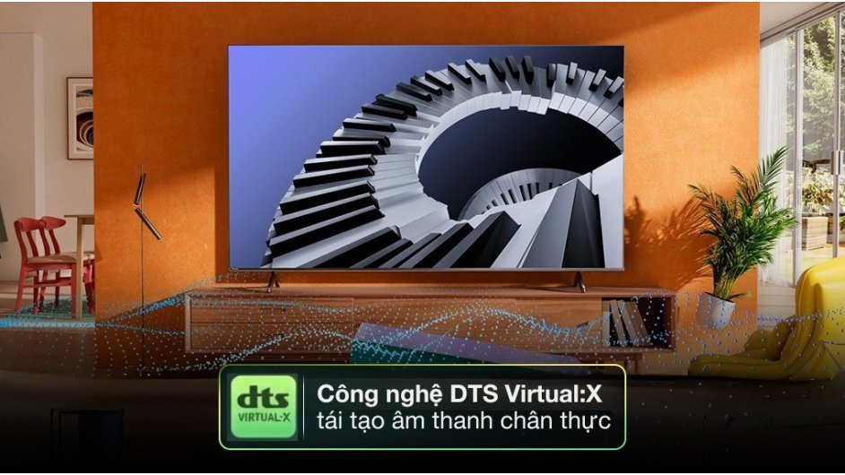 - DTS Virtual:X tái tạo hiệu ứng âm thanh vòm sống động, cho cảm giác như đang ngồi giữa khán phòng.