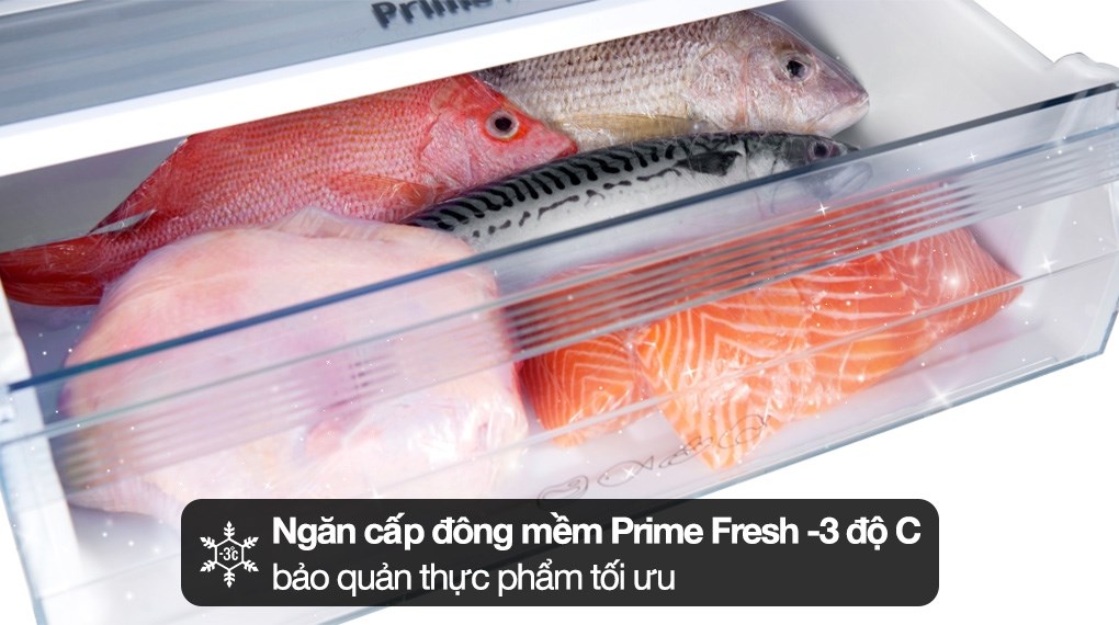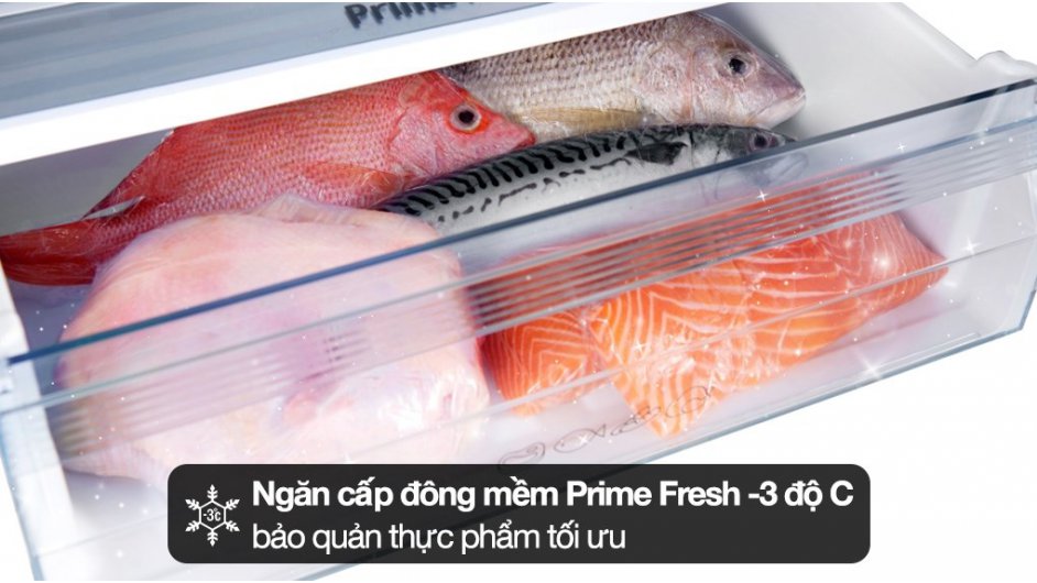 - Ngăn cấp đông mềm Prime Fresh -3 độ C, nấu ngay không cần rã đông, giữ thực phẩm luôn tươi ngon đến 7 ngày.