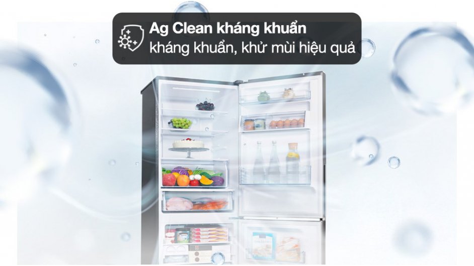 - Công nghệ Ag Clean sử dụng các phân tử bạc giúp ức chế vi khuẩn và mùi hôi trong tủ. Nhờ đó, không gian tủ luôn sạch thoáng và giảm nguy cơ lây nhiễm mùi giữa các loại thực phẩm.