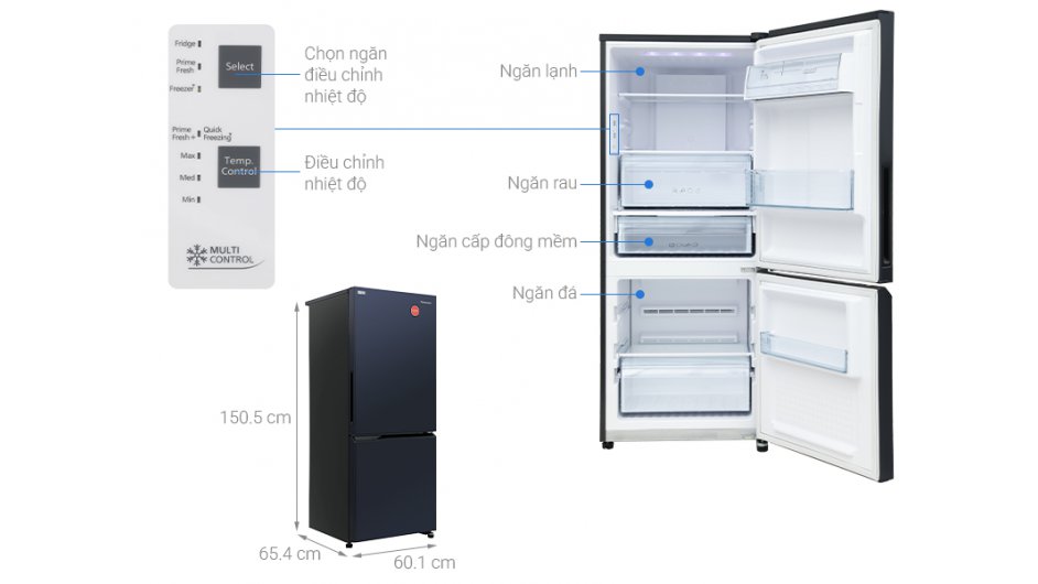 - Thiết kế ngăn đá dưới tiện lợi, dung tích sử dụng 251 lít phù hợp gia đình 2 - 3 thành viên.