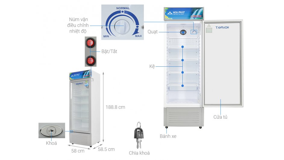 Thông số kỹ thuật Tủ mát Hoà Phát 242 lít HSR S6242 new